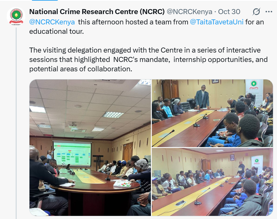 January to June 2025 Newsletter Explore the latest highlights from the National Crime Research Centre, including key findings on criminal gangs in Kenya, calls for reform in community policing, strategic partnerships with institutions like Chuka [...]